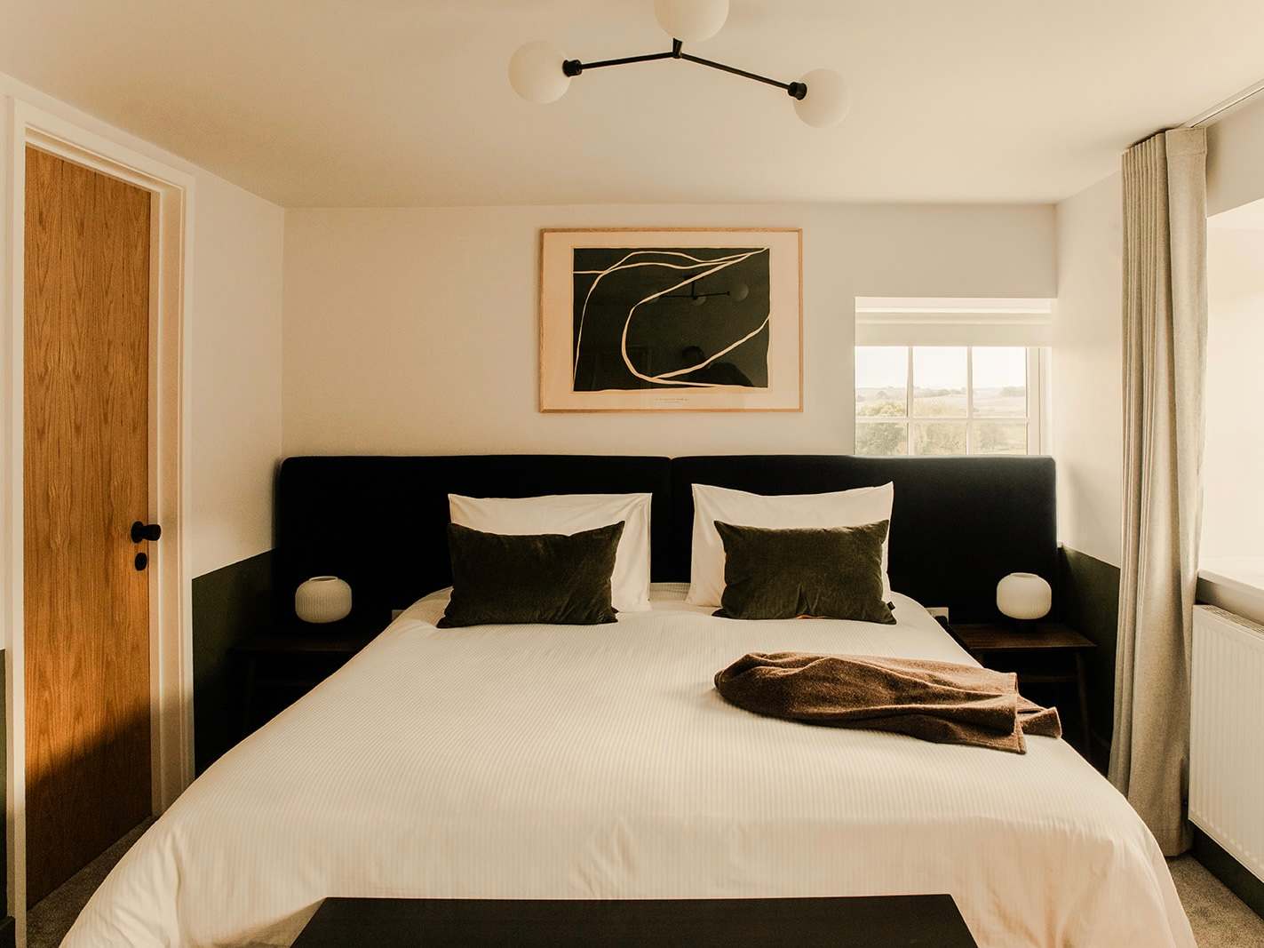-Five serene bedrooms, three with ensuites, two bedrooms have zip/link beds which can be made up into singles or doubles.